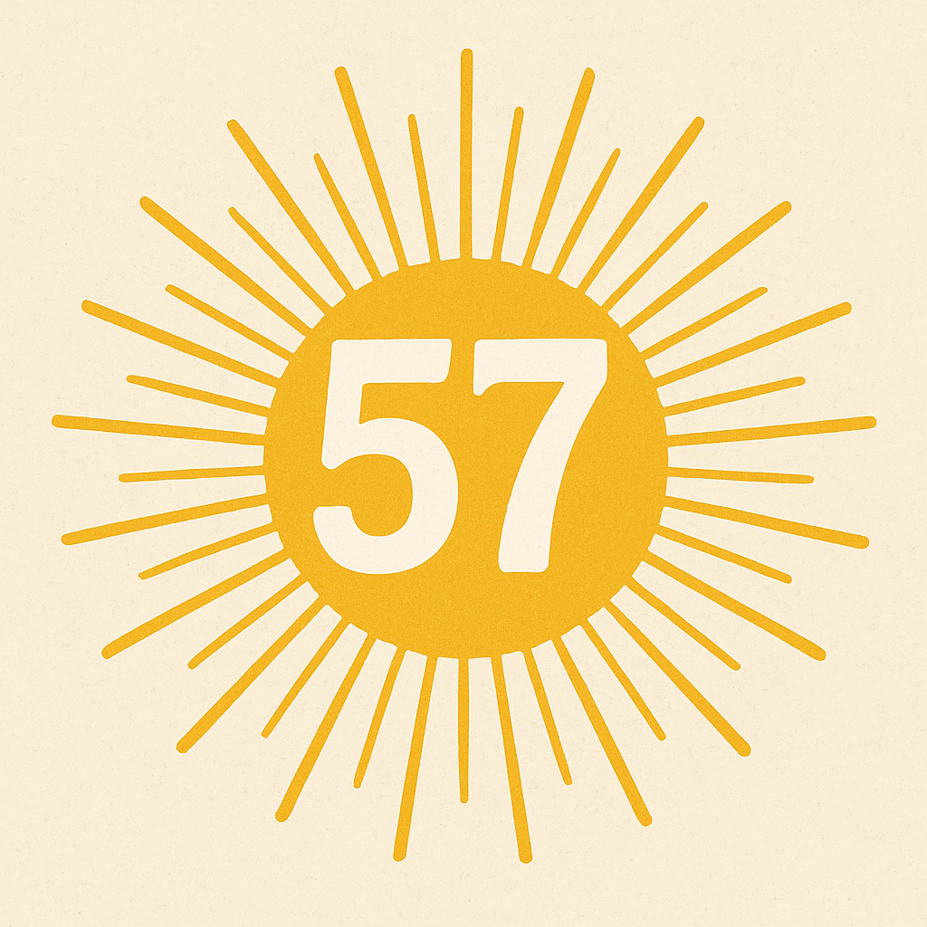 A uno que entre sus manías y TOCs le gusta cada año ver lo especial que tiene el cumpleaños que toca, el 57 le parece soso. Aunque bueno, es un semiprimo (57 = 3 × 19, ambos primos) pero el próximo también; y un número de Leyland (57 = 2⁵ + 5²), que de esos no me tocará, si Dios quiere, hasta el 100.